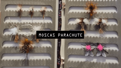 A la hora de preparar nuestra caja de moscas para una jornada de pesca, debemos buscar un equilibrio entre variedad en un espacio limitado. Por ello, hay que hacer modificaciones de forma continua, adaptándolas a las circunstancias y evolución, y en verano es la mejor época para incluir moscas parachute. Definidas de una forma sencilla, los montajes de moscas parachute (paracaídas) del resto de moscas por colocar un plumero encima. Inventadas en la década de 1930 este tipo de moscas tuvo mucha aceptación entre los pescadores de la época, aunque luego cayo algo en el olvido. Tampoco se extendió de los países anglosajones a otros como España. Rescatadas del olvido hace algo más de 2 décadas, ahora son unos clásicos indispensables para el pescador a mosca seca.
